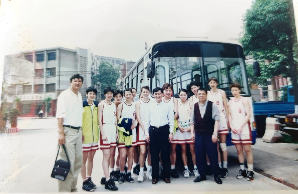 ▲1999年5月25日,沈陽電梯隊(duì)在公交車旁合影留戀。從“中國籃球大事記”查閱到,1999年全國女子籃球甲級聯(lián)賽,沈陽電梯隊(duì)奪得了當(dāng)年聯(lián)賽冠軍。
