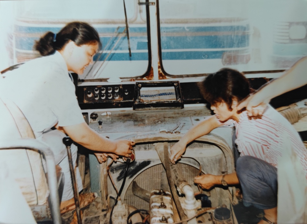 ▲80年代,車間修理工檢修模樣。手上拿著自制試燈(試電筆)檢測(cè)著車輛線路,臉上洋溢著那個(gè)年代的笑容,是樸實(shí)、是堅(jiān)毅。女性修理工可不多見。