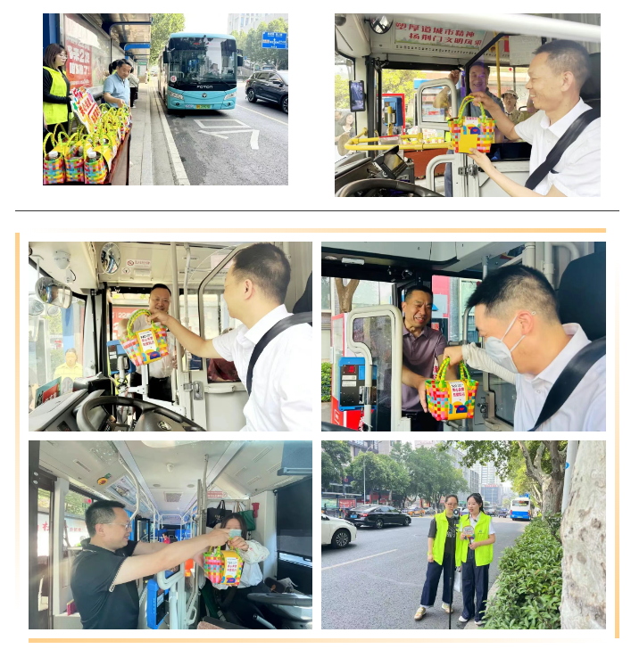 在公交樞紐站,青年志愿者向乘客發(fā)放定制宣傳扇,并邀請乘客在打卡區(qū)拍照留念,傳遞出公眾對駕駛員的認(rèn)可與支持,進(jìn)一步凝聚“關(guān)心關(guān)愛 與愛同行”的社會共識。