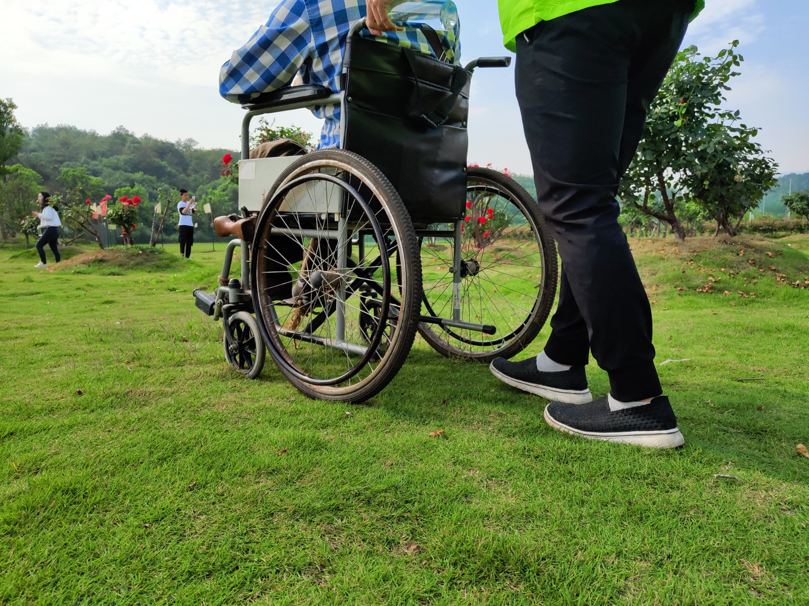 (▲圖為 志愿者陪同殘疾朋友游玩圣境花谷)