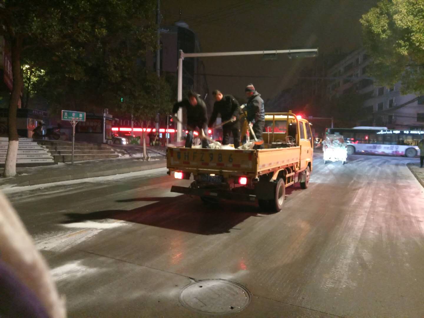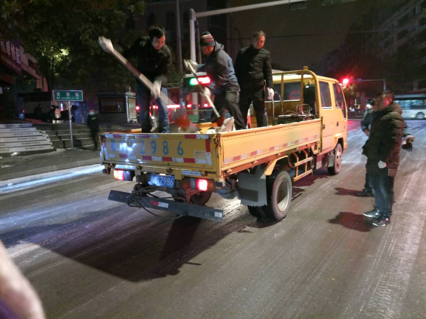 28日凌晨4點,集團公司領導集結組織80多人上路撒鹽除冰,但除冰力量有限,仍有很多路段顧及不到,交通也多處被堵。望全社會共同參與抗雪除冰,為荊門市民的平安出行貢獻力量。