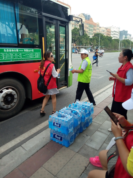 掇刀區(qū)義工聯(lián)協(xié)同公交志愿者為公交司機(jī)送清涼活動(dòng)