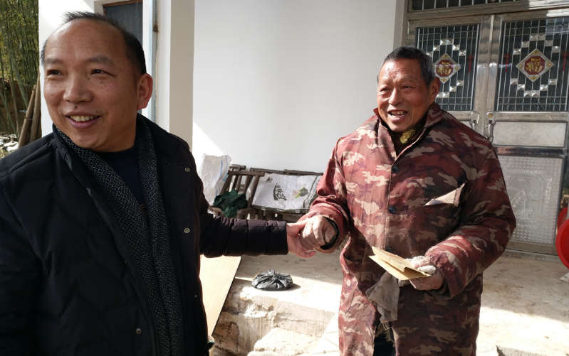 走訪中,扶貧負(fù)責(zé)人與李召林、李華山、周啟明等村民親切交談,對他們2017年脫貧情況進(jìn)行了了解,并送上新年慰問金。村民拉著扶貧負(fù)責(zé)人的手表示了對扶貧組到來的萬分感謝以及黨和國家對他們的關(guān)懷之情。