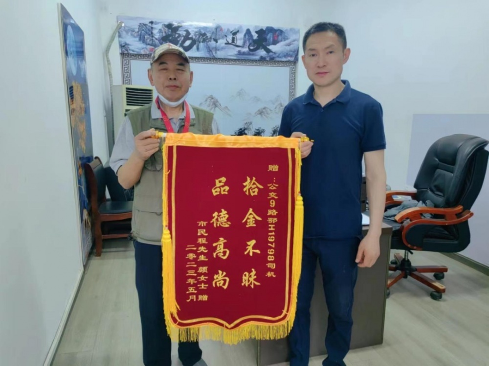 “拾金不昧,品德高尚”的錦旗