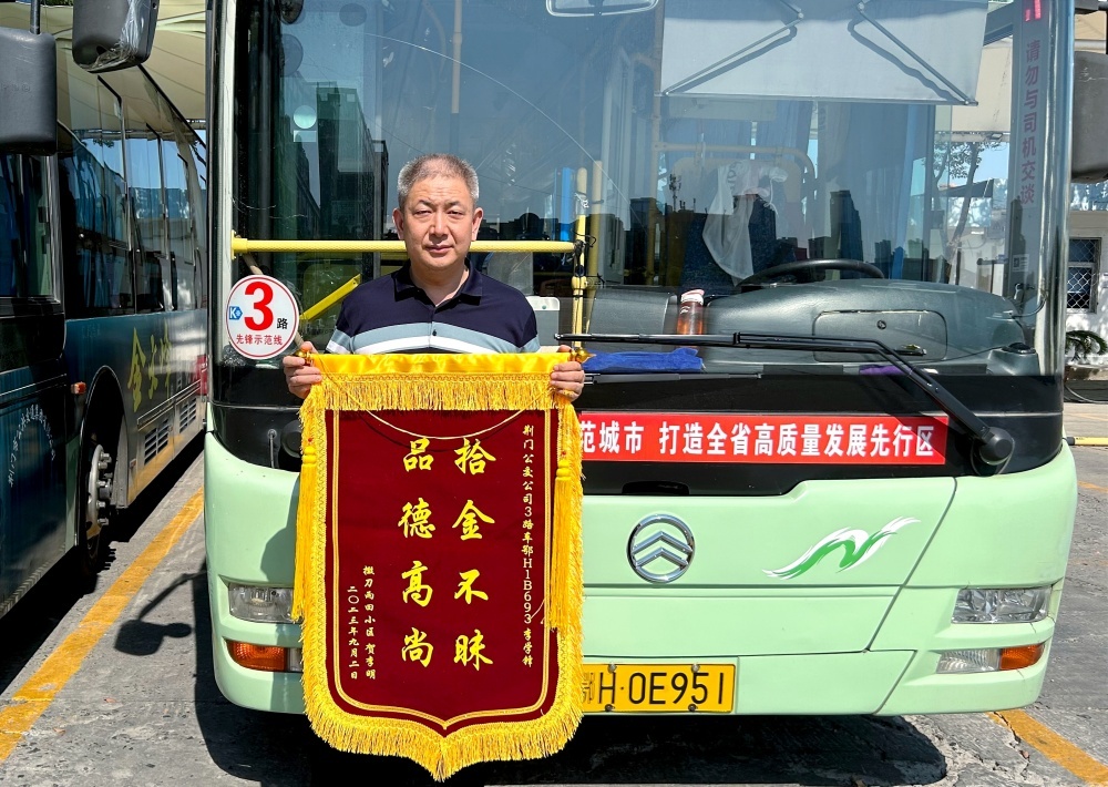 9月4日,市民賀先生拿著一副寫有“拾金不昧 品德高尚”的錦旗交給市公交集團二公司相關負責人手上,希望轉交給3路李學鋒師傅,言語間滿是感激。