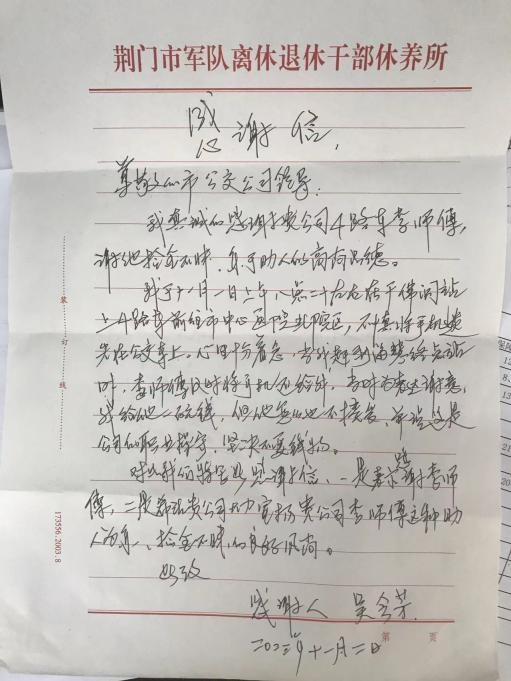 11月6日上午9時(shí),公汽三公司收到由調(diào)度中心代收的一封感謝信,信中寫到“我真誠的感謝貴公司4路車?yán)顜煾?,謝他拾金不昧。樂于助人的高尚品德”。