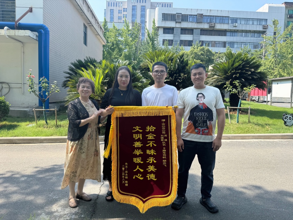 次日上午,胡云飛同路隊(duì)長(zhǎng)一起來到岳女士家住小區(qū),上門將錢包歸還。錢包失而復(fù)得,岳女士的臉上洋溢著喜悅與感激之情,她緊緊握住胡云飛的手連聲道謝,并送上錦旗為城市文明和公交服務(wù)點(diǎn)贊。